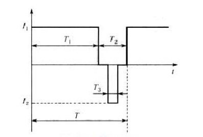 新型的直流充電樁采用快速充電法,該系統(tǒng)區(qū)別于傳統(tǒng)充電器所采用的連續(xù)電流充電和脈沖電流充電方式,采用了智能化的變脈沖充電方式,即采用下圖所示的充電電流脈沖,包括充電脈沖T1間歇脈沖T2以及放電脈沖T3。通過間歇停充,使蓄電池經(jīng)化學(xué)反應(yīng)產(chǎn)生的氧氣和氫氣有時間重新化合而被吸收掉,使下一輪的恒流充電能夠更加順利地進行,使蓄電池可以吸收更多的電量。