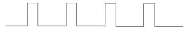 但這種脈沖寬度不是可以無限制的變窄的,脈沖寬度的變化范圍,即調(diào)節(jié)范圍僅是10%—90%。這一特點決定了這種PWM芯片,并不適用于一個從0電壓起調(diào)的所謂連續(xù)可調(diào)的電源。例如一臺500V5A的開關(guān)電源,當(dāng)它輸出達500V5A時,控制脈沖最寬,形如: